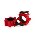 These aluminum barbell collars are designed to provide fast and secure plate locking during strength training sessions. The quick release lever mechanism allows efficient weight changes while maintaining a firm hold on the barbell sleeve.