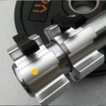 Aluminum barbell collars with quick release locking mechanism, designed for secure plate fastening during Olympic barbell training.