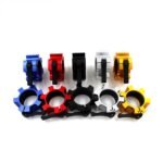 Constructed from aluminum with an internal protective lining, the collars are suitable for Olympic-style barbells used in commercial gyms, training studios, and home setups.