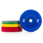 Color rubber bumper plates designed for barbell training spaces that need low bounce, cleaner weight identification, and everyday floor-friendly use. They suit commercial gyms, school weight rooms, and performance facilities looking for high-density natural rubber, a 2-inch steel ring, and multi-color plate organization.