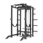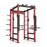 - Integrated power rack frame combines barbell, pull-up, and cable training functions
