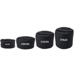 This strongman sandbag is a soft free weight training tool designed for loaded carries, lifts, squats, presses, throws, and other whole-body conditioning work. It suits strength gyms, athletic performance centers, personal training studios, and functional training zones that want a versatile alternative to rigid free weights. The product is shown in a black nylon finish with printed capacity markings, and the listed options of 50lb, 100lb, 150lb, 200lb, and 250lb support progression across different user levels. Its compact cylindrical form makes it practical for floor training spaces, group sessions, and strength programs focused on grip and body control.