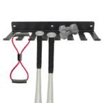 This Wall-Mounted Gym Storage Rack is a steel accessory organizer designed to keep smaller training tools off the floor and easy to access. It suits commercial gyms, boutique studios, school fitness rooms, hotel gyms, and personal training spaces that need a practical wall-based storage point for daily-use accessories. The visible design includes a rear mounting plate with fixing holes and multiple forward-projecting storage arms, allowing different hanging points for belts, bands, ropes, straps, and similar items. Its compact size also makes it useful in tighter equipment zones where floor space needs to stay open for movement and training flow.