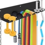 What types of gym accessories can this rack store? +